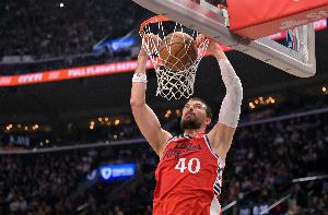 本场比赛,快船中锋伊维察·祖巴茨状态火热,他全场14中13,其中罚球11中7,得到33分7板1助1断2帽,正负值+9。